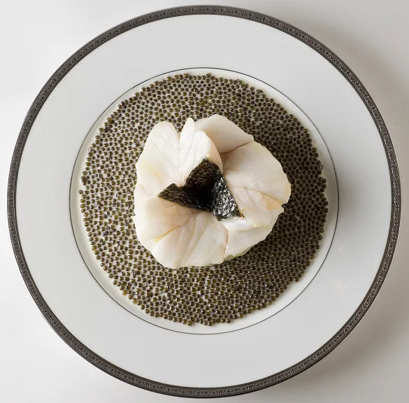 Escalopines de bar à l’émincé d’artichaut, caviar Kristal 190