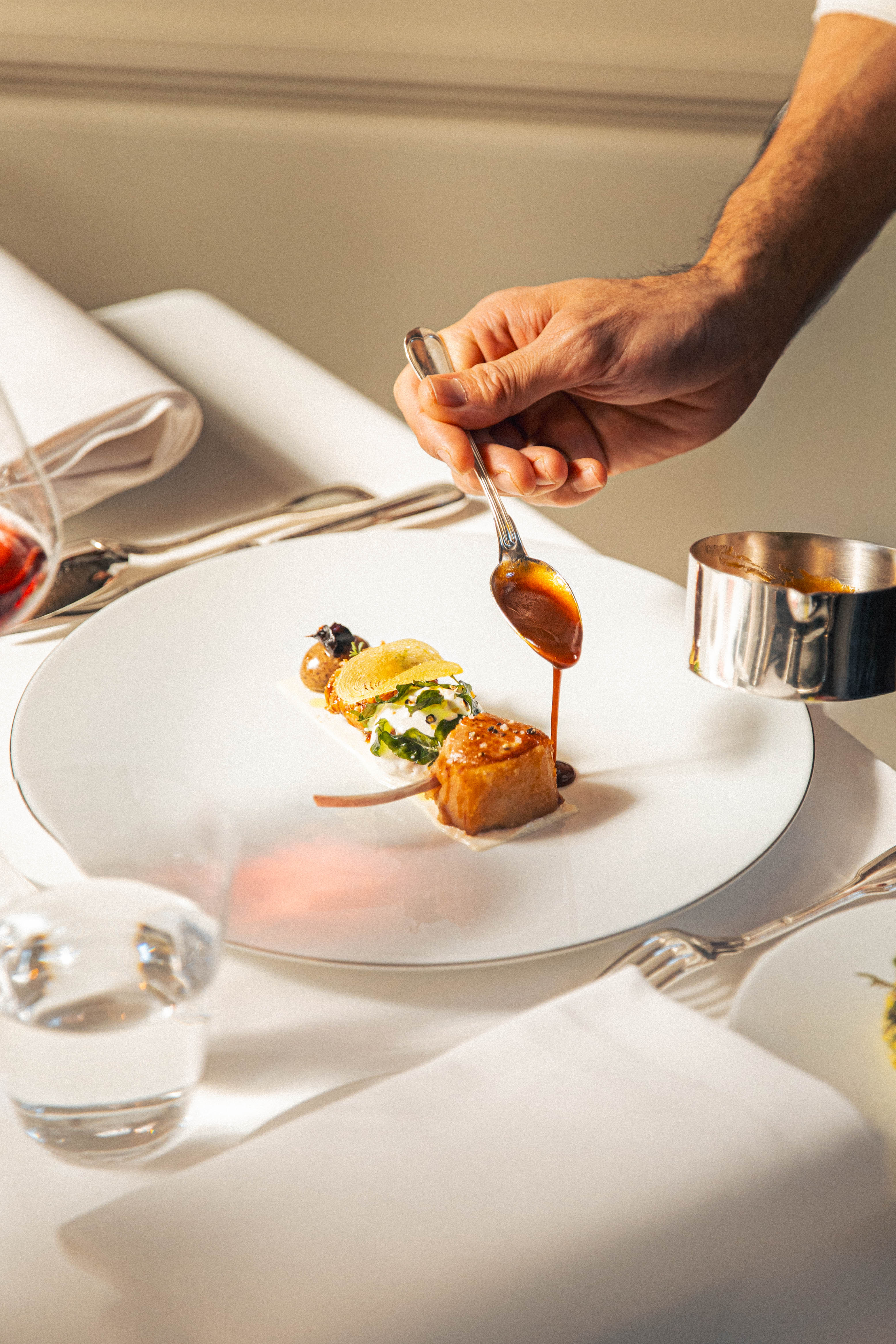 Pour le nouveau Chef, cette transmission est un acte fondamental de sa démarche créative. Il prolonge un héritage culinaire et perpétue les grands classiques de son illustre prédécesseur. Il y écrit ses propres pages, en imaginant de nouvelles créations plus personnelles, toujours respectueuses de la haute gastronomie française.